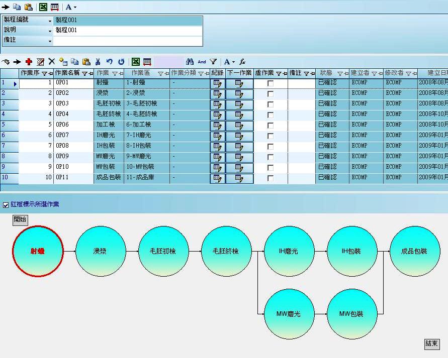 可設定式之生產流程:可依各公司之產品特性設定商產流程,資料項目等